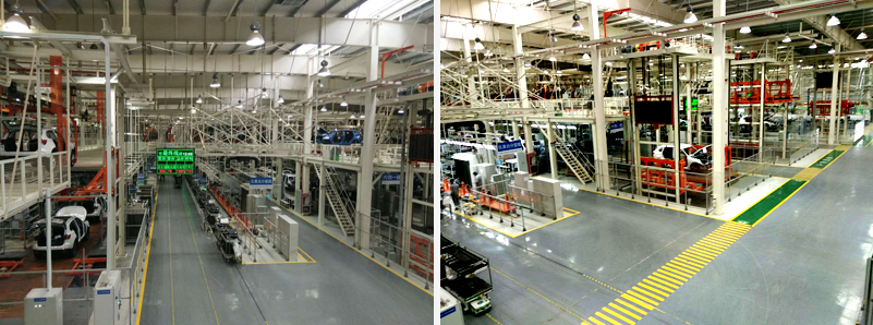 The Hanting Phase I final assembly conveyor line completes the assembly task of the whole vehicle. The workshop undertakes the full-process operation task of assembling large and medium-sized SUV/electric vehicle/hybrid SUV from the parts into the whole vehicle and passing the test and testing. The scope of the project includes: PBS line friction skid, interior assembly large skate line, chassis friction line, final assembly line, door friction line, OK line, rain line, commodity inspection line, engine sub-assembly, etc., including craft hangers and Lighting, KPK, process secondary pipeline, full system integration, conveyor line configuration CS control system, AVI, ANDON system. The overall function of vehicle model information control: body information is managed, dispatched, routed, and material pulled by high-frequency electronic tags.