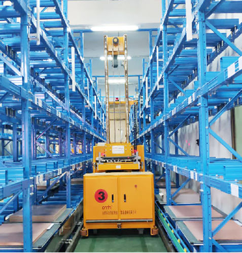 通過車體上配置的堆垛機,與輸送線以及倉儲貨架對接應(yīng)用
