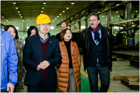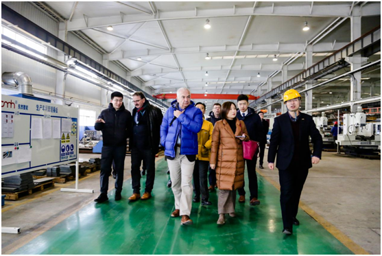 11月27日,中德(歐)智能制造產業發展論壇代表一行18人考察東杰智能位于太原不銹鋼產業園區智能裝備及工業機器人生產基地,東杰智能總經理王永紅全程陪同接待。