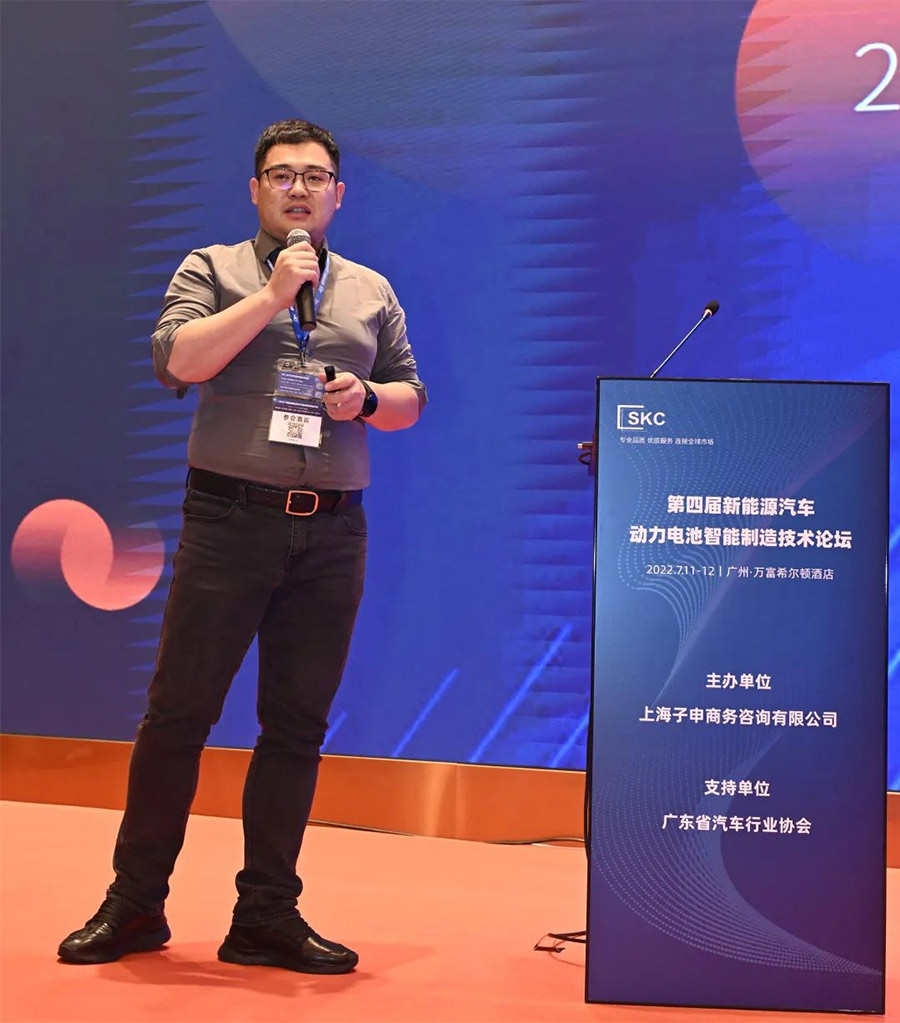 東杰智能副總經理郭強忠在新能源動力電池論壇上發表了《智慧物流賦予新能源新引擎》的主題演講,分別就數字孿生加持新能源行業變革和柔性制造引領新能源動力電池企業發展進行闡述,與多位行業專家及企業家針對當下焦點問題進行了深度對話。