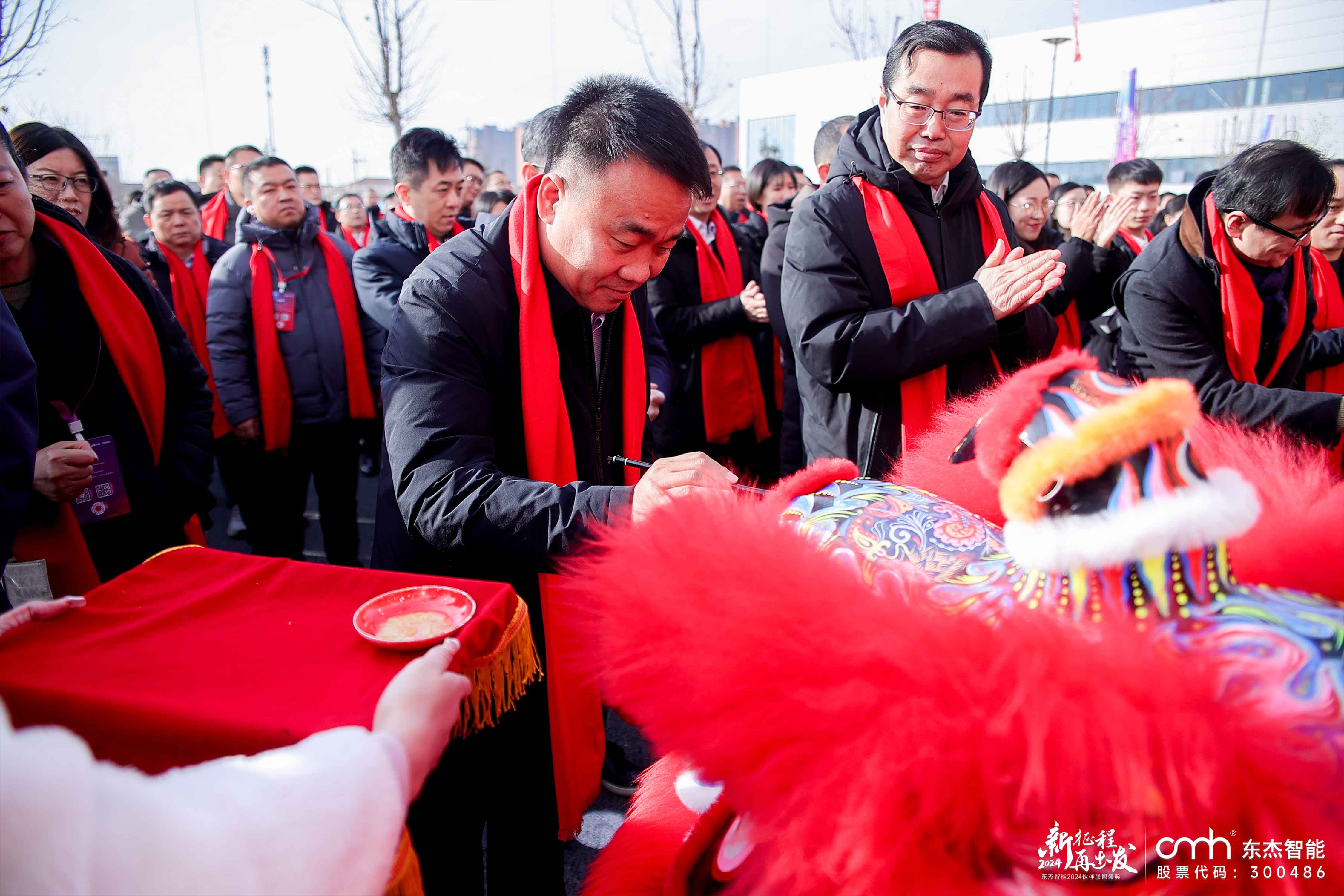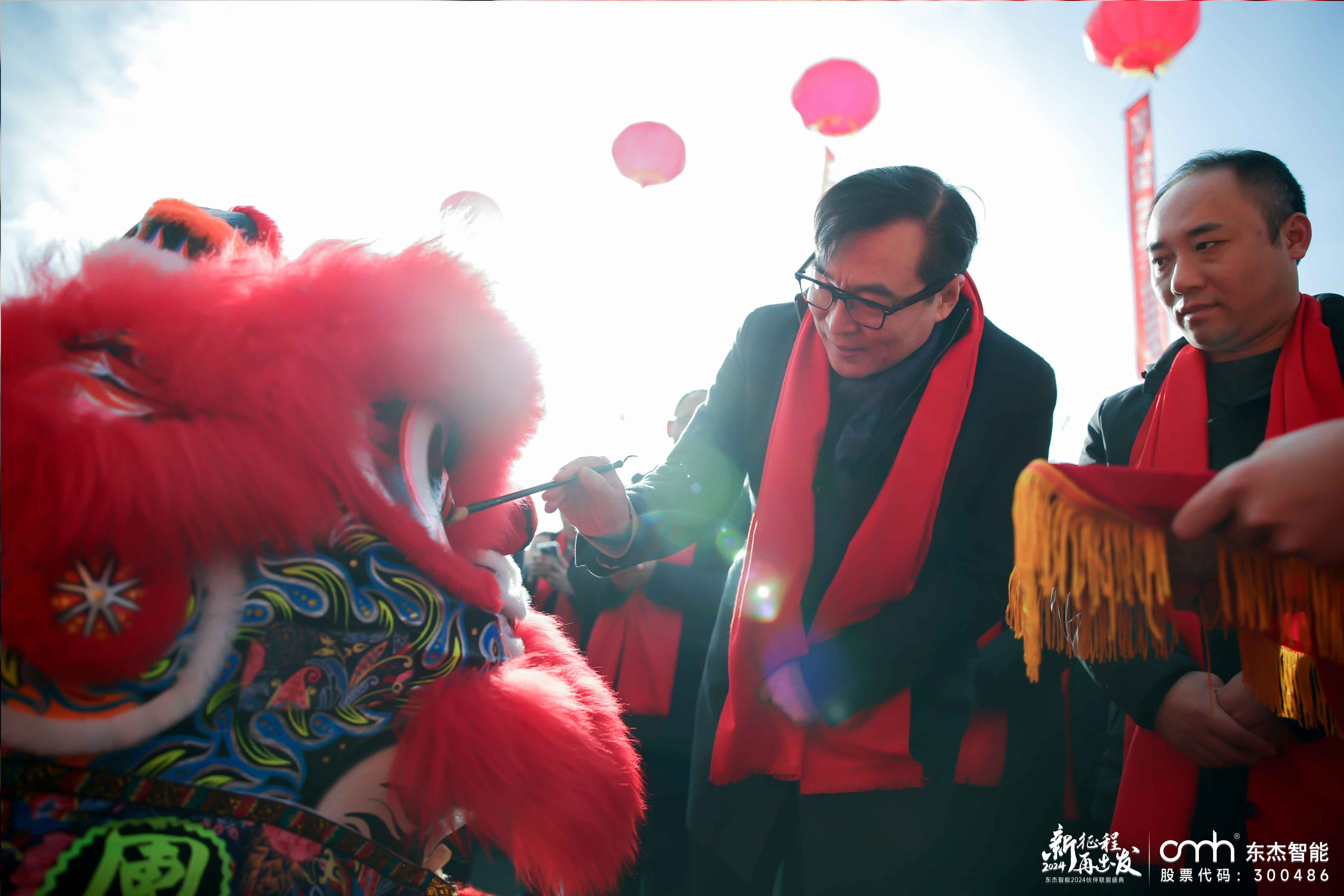 慶典上,東杰智能董事長婁剛董事長與東杰智能總經理王振國一同為象征著吉祥好運的瑞獅點睛,象征著公司開啟新篇章的吉祥和活力。隨著瑞獅的舞蹈,現場洋溢著喜慶氣氛,預示著公司在未來將如瑞獅般充滿活力和力量。