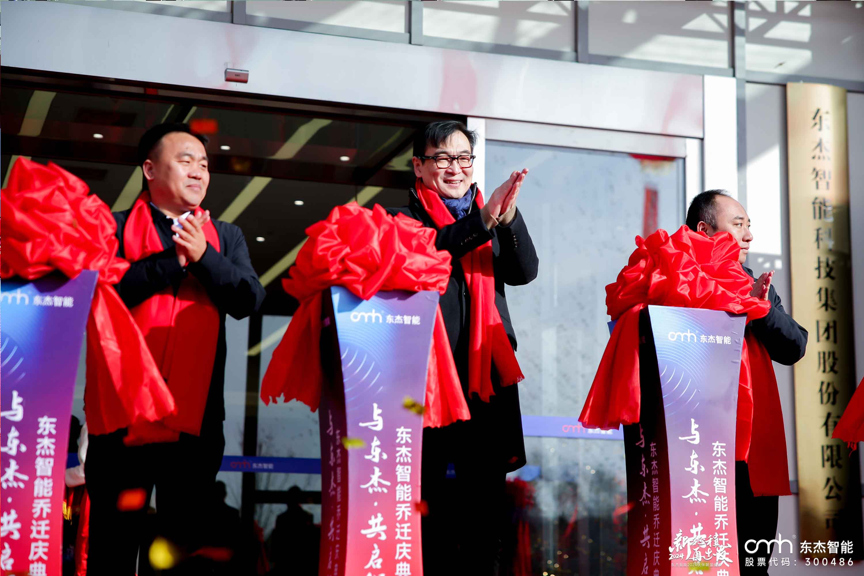 金剪齊開,旗開得勝。伴隨著掌聲與歡呼聲,剪彩儀式隨后也拉開了序幕。東杰智能董事長婁剛、監事會主席張文清先生、總經理王振國、董事會秘書張新海、副總經理朱忠義、副總經理郝志勇、財務總監張路手持鴻運金剪,為東杰智能科技剪開一條蓬勃發展之路,以喬遷之喜,啟航遠大新征程。